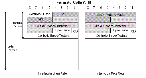 Il campo VPI e' il Virtual Path Identifier o identificativo di Percorso Virtuale. Come si vede, piu' percorsi virtuali sono supportati entro la rete che non all'interfaccia utente-rete. Il campo VCI o Virtual Channel Identifier e' l'identificativo del Canale Virtuale.