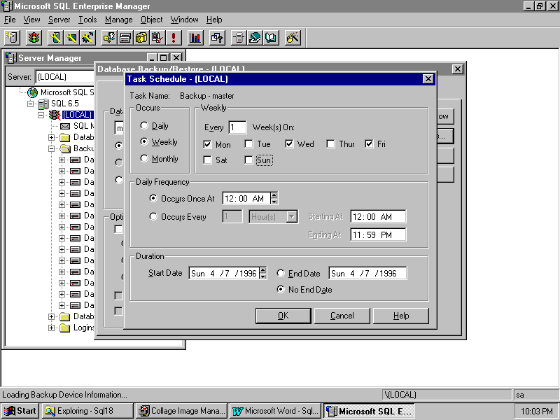 You have complete flexibility in setting the times for your backups, the recurring intervals, and more. In this example, we've set up Monday, Wednesday, and Friday backups.