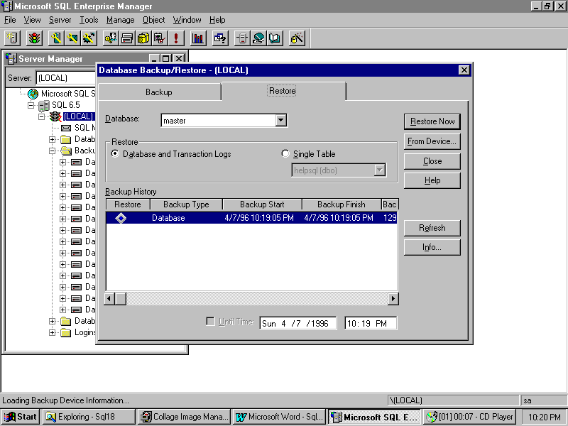 The restore options enable you to designate the source and destination for restoration efforts.