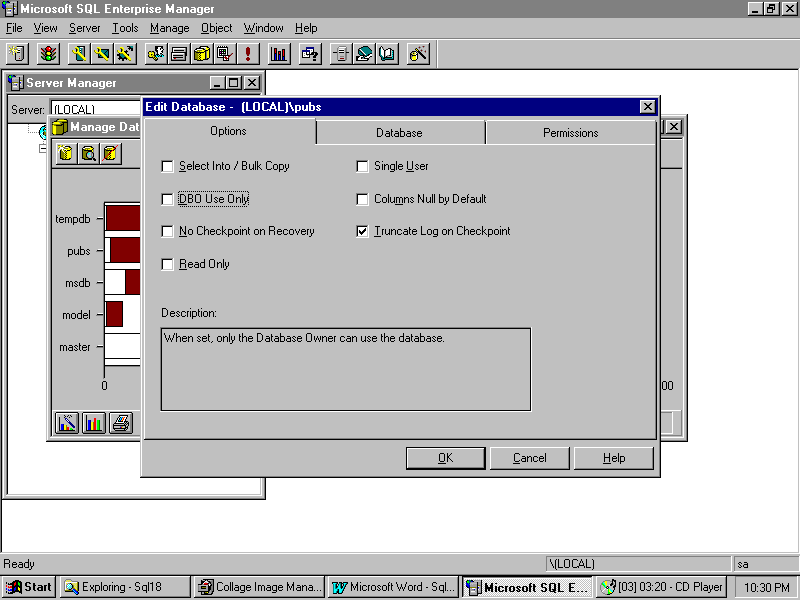 The DBO Use Only option indicates that the database is being loaded and is not ready for production use. Deselect the option to "turn on" the database for other users.