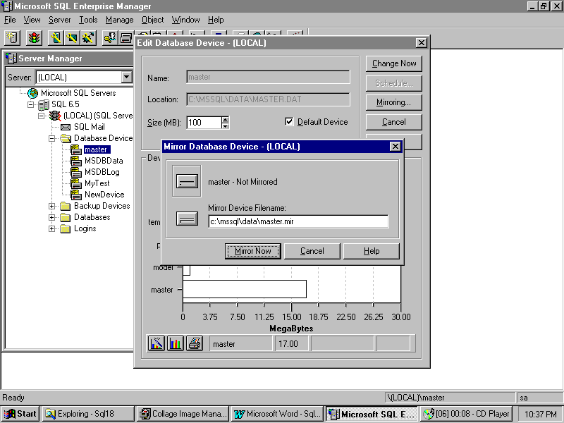 When you select the location of the mirror file, SQL Server will mirror the requested database.