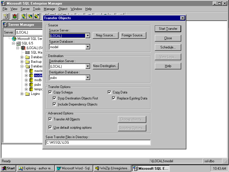 Select the options carefully when you use the Transfer utility. They control the objects that will be copied to the new database.