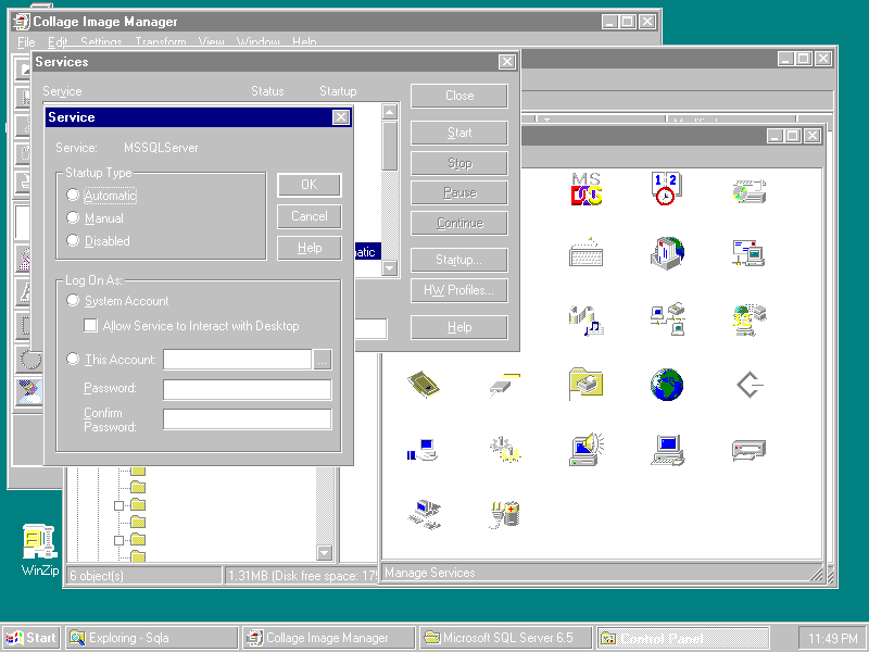 Change the Windows NT account that a service uses through the Service dialog box.