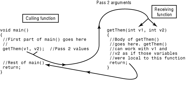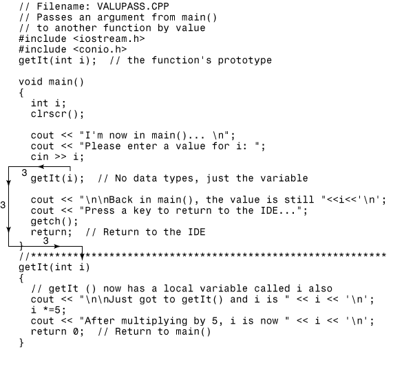In this section, you learned that there are three ways to pass variables from one function to another. When you pass by value, the called function can't change the calling function's variables. When you pass by address, the called function can change the calling function's variables. Passing by reference performs the same job as passing by address, but you can pass nonarrays by reference without the messy syntax required when you use address passing.