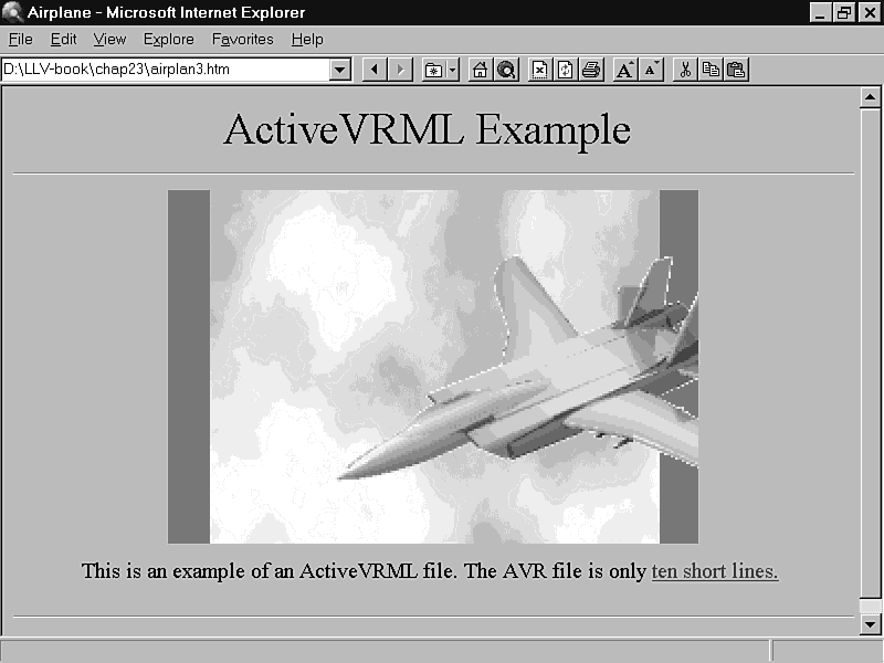 Figure 11.3: Here's the ActiveVRML airplane flying off the right side of the screen.