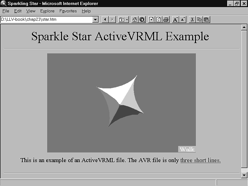 I hope ActiveVRML has whet your appetite for the real VRML, or maybe you're confused because there really weren't enough pages to cover ActiveVRML in depth. In either case, many of the chapters ahead will get you into the nitty-gritty of VRML 2.0: