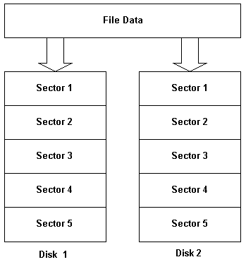 Mirroring means that each disk drive has a twin. Anything written to one drive is also written to the second drive simultaneously. Mirroring is 100 duplication of your drives. If one drive fails, its twin can replace it without loss of data.