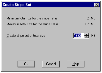 Setting the total size of the stripe set in the Create Stripe Set dialog.
