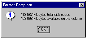 The status bar at the bottom of Disk Administrator's window isn't updated at the completion of the formatting process. To update the status bar, select another volume, and then reselect the newly created set.