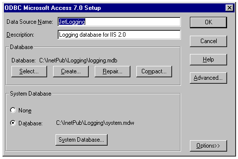 The ODBC data source is one of the most common source of problems with logging databases, as is the Internet Database Connector (IDC) described later in the "Using the Internet Database Connector" section. Problems with ODBC data sources are common to SQL Server and other client/server or desktop databases having 32-bit ODBC drivers. Thus, it's important to understand the details of setting up ODBC data sources for access by IIS 2.0 and server applications that run with IIS 2.0.