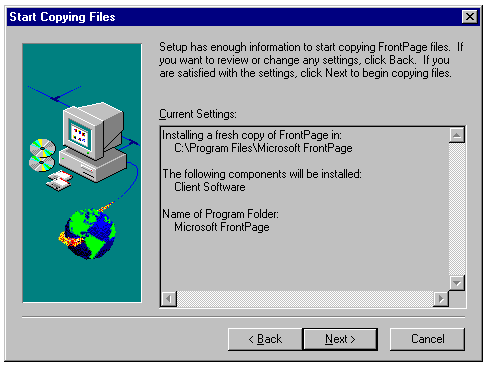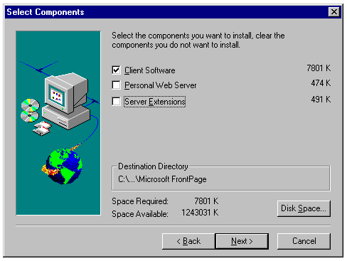 The Windows NT Server 4.0 setup program doesn't offer an option to install FrontPage 1.1. To install FrontPage from the distribution CD-ROM onto your Web server, follow these steps:
