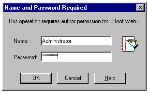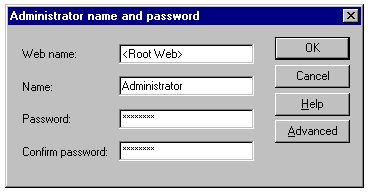 Adding a password for your user ID to enable administration of the FrontPage Web site.