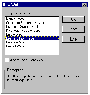 20.58 appears when you choose New Web from FrontPage Explorer's