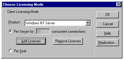 Adding per-server licenses for Windows NT Server 4.0.
