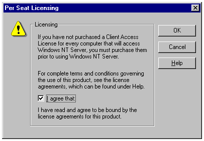 The License Violation message that appears after selecting per-seat licensing doesn't conform to Microsoft's stated policy that you can change from per-server to per-seat licensing without violating your license.