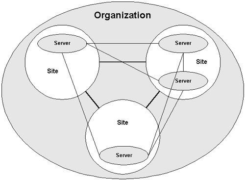 Figure 23.5 illustrates the relationship between Servers, Sites, and Organizations.