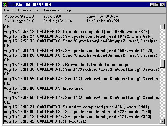 Running LoadSim creates an Exchange profile (Servername-##) for every simulated user. If you specify a load test with 100 users, LoadSim creates 100 exchange users and user profiles. The test profiles ordinarily don't present a problem, because it's uncommon to run a production Exchange client on the server. You can use the Exchange client to delete the test profiles, if necessary.
