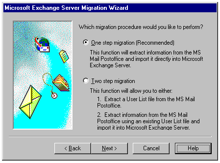 After you complete your test phase, you use the second step of the two-step option to extract and import the message files, folders, and shared folders from the MS Mail system into the Exchange server's message store. Users have been created, as necessary, so you move only existing MS Mail messages to the Exchange message store.
