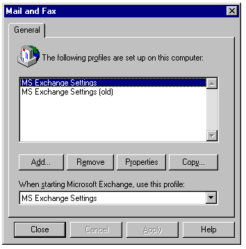 Making the new profile the default when starting Microsoft Exchange.