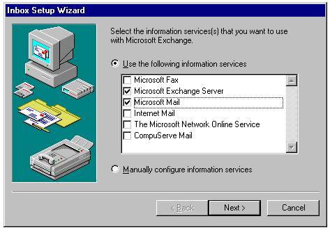 Selecting the information services (MAPI service providers) for the client.