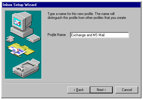 You add new profiles by clicking the Add button to start the Windows 95 Inbox Setup Wizard or the Windows NT Microsoft Exchange Setup Wizard. The following steps describe how to set up a new profile using the Inbox Setup Wizard: