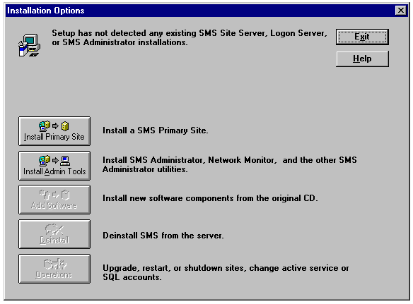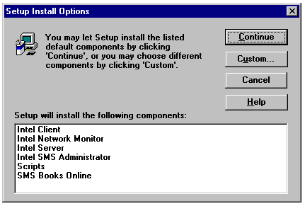The Installation Options dialog for SMS 1.1.