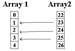 Figure 4.2 shows a depiction of which array elements in @array2 are being assigned to which array elements in @array1.