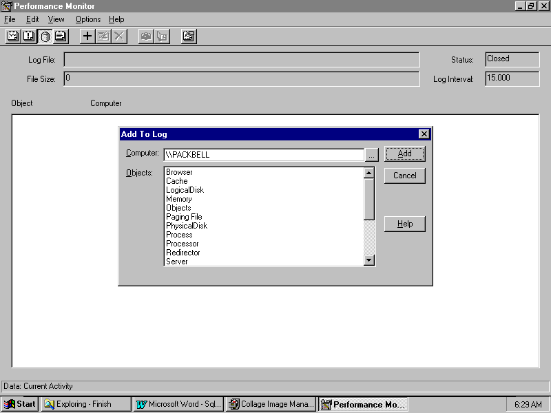 You can log the performance statistics from another Windows NT system running SQL Server by entering its name in the Computer text box.