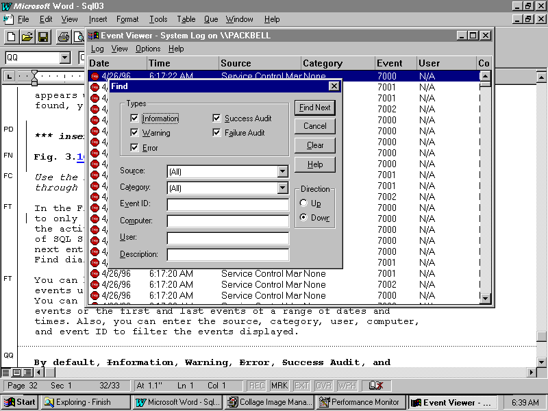 Use the Direction radio buttons to define the direction of the search through the log.