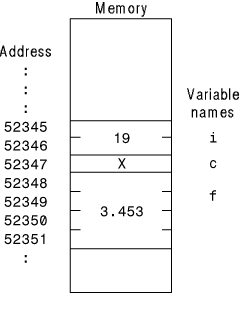 Each memory location in your computer contains a specific address. When you define variables, Visual C++ finds unused memory locations and stores the variables there. When you refer to a variable by name, Visual C++ finds that variable's address and works with the value stored there.