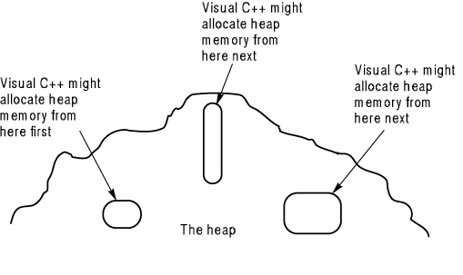 memory within each allocation. Whether you allocate 10 or 100 bytes of memory, Visual C++ might go anywhere on the heap to get that memory, but those 10 or 100 bytes will all appear back-to-back, sequentially in memory. You can rely on the memory being