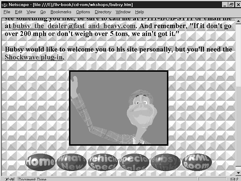 Boy, Bubsy is demanding. Not only did he get me to work on his site, but he managed to get my co-author to add a VRML showroom as well.