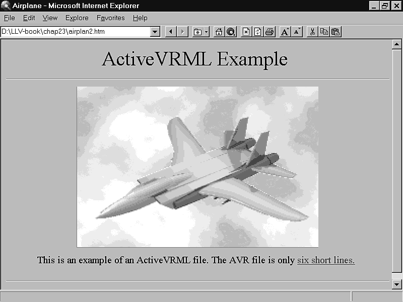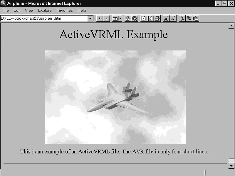 Figure 11.3: Here's the ActiveVRML airplane flying off the right side of the screen.