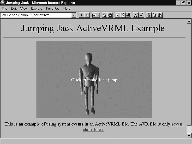 These sample behaviors are very simple, but they demonstrate how ActiveVRML can be used to make scenes interactive.