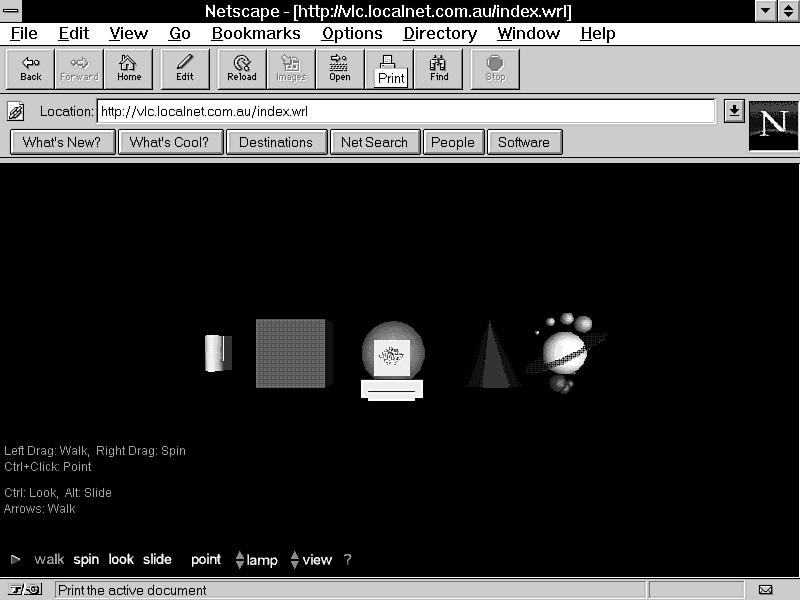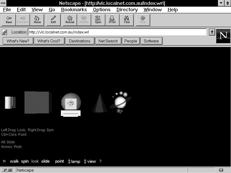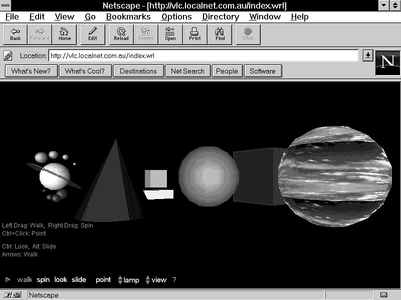 The following steps should give you some practice moving around a VRML world in Live3D with the mouse.