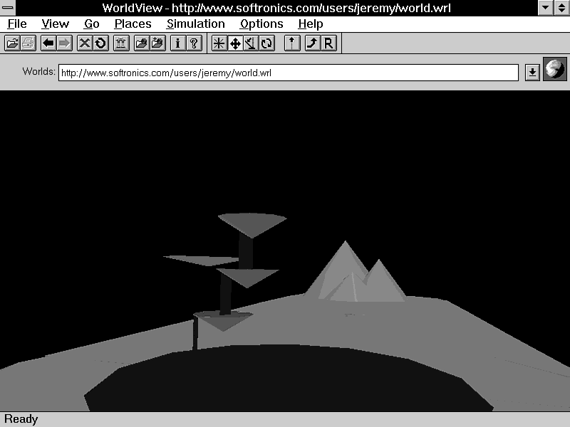 The first browser comes from Intervista. WorldView is available either as a standalone program or as a plug-in to Netscape 1.x and above, as well as for Microsoft's Internet Explorer. WorldView has one advantage over Live3D in that it can run with whatever your favorite browser environment is. The screen shot presented in Figure 13.7 shows the standalone version.