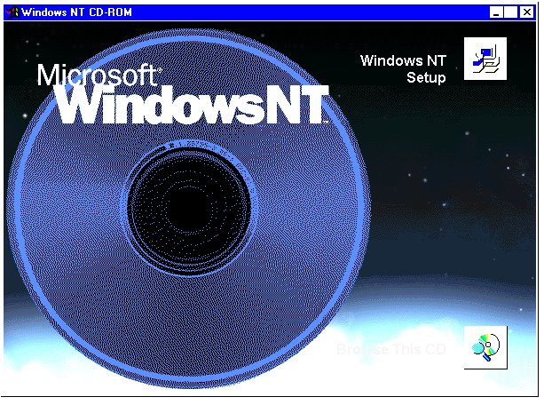 The Windows 95 and Windows NT splash screen for installation from the operating system.