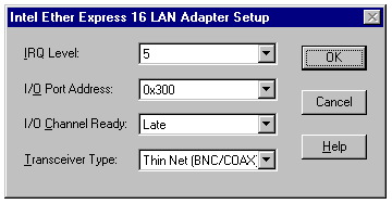 If the PC has a network card, you can use Control Panel's Network tool or Windows Setup to display the current IRQ and I/O address range settings for your network card. Figure 6.1 shows the Resources page of the property sheet for an Intel EtherExpress 16/16TP network card. Click the Advanced tab to display additional settings for the network adapter. Windows 3.1+'s Network Setup dialog leads to dialogs that display similar information.