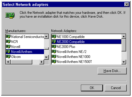 When you install Windows 95, you can choose to have Setup locate installed network adapter cards. Windows 95 includes a large database of information about hundreds of popular NICs and their default settings. If a NIC is installed in the client, chances are that Windows 95 can automatically locate the NIC and load the proper drivers for it during the installation process.