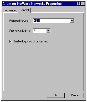 The General page of the Client for NetWare Networks Properties sheet.