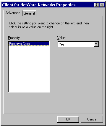 The Advanced page of the Client for NetWare Networks Properties sheet.