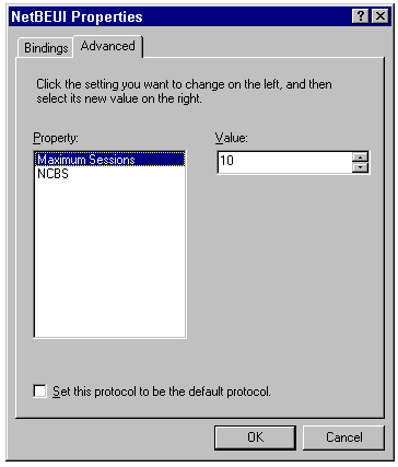 The Advanced page of the NetBEUI Properties sheet.
