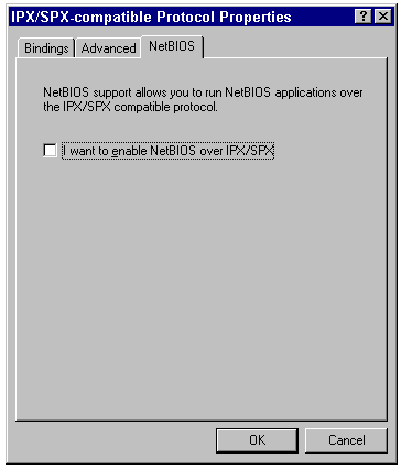 The NetBIOS page of the IPX/SPX-Compatible Protocol Properties sheet.