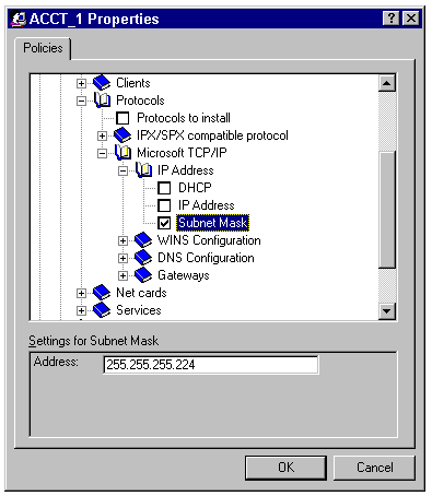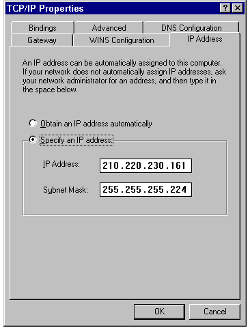 Use extreme care when you enter the IP Address and Subnet Mask values. If either value is entered incorrectly, problems ranging from subtle address conflicts to a network crash will result.