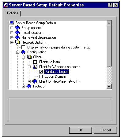 If you choose to create defaults, the Server Based Setup Default Properties sheet appears (see fig. 10.32). This sheet displays a hierarchical listing of all policy items that can be edited for use as defaults during automated installation. After you finish editing these items, click OK to close the property sheet.