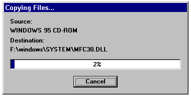 Progress of the copying process shown by the Copying Files message box.