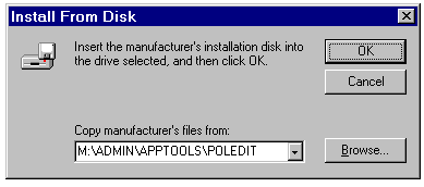 Using the Install From Disk dialog for installing Poledit.exe.