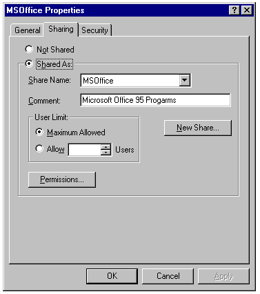 HPFS (Windows NT Server 3.x only), and NTFS. Shares are the only form of
