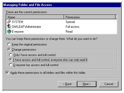 folder and all subfolders as a group. NTFS folder access permissions and