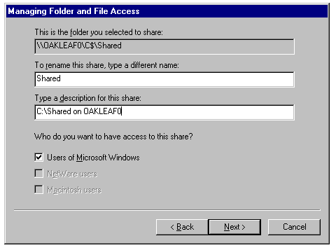 and File Access Wizard provides a step-by-step approach to sharing files